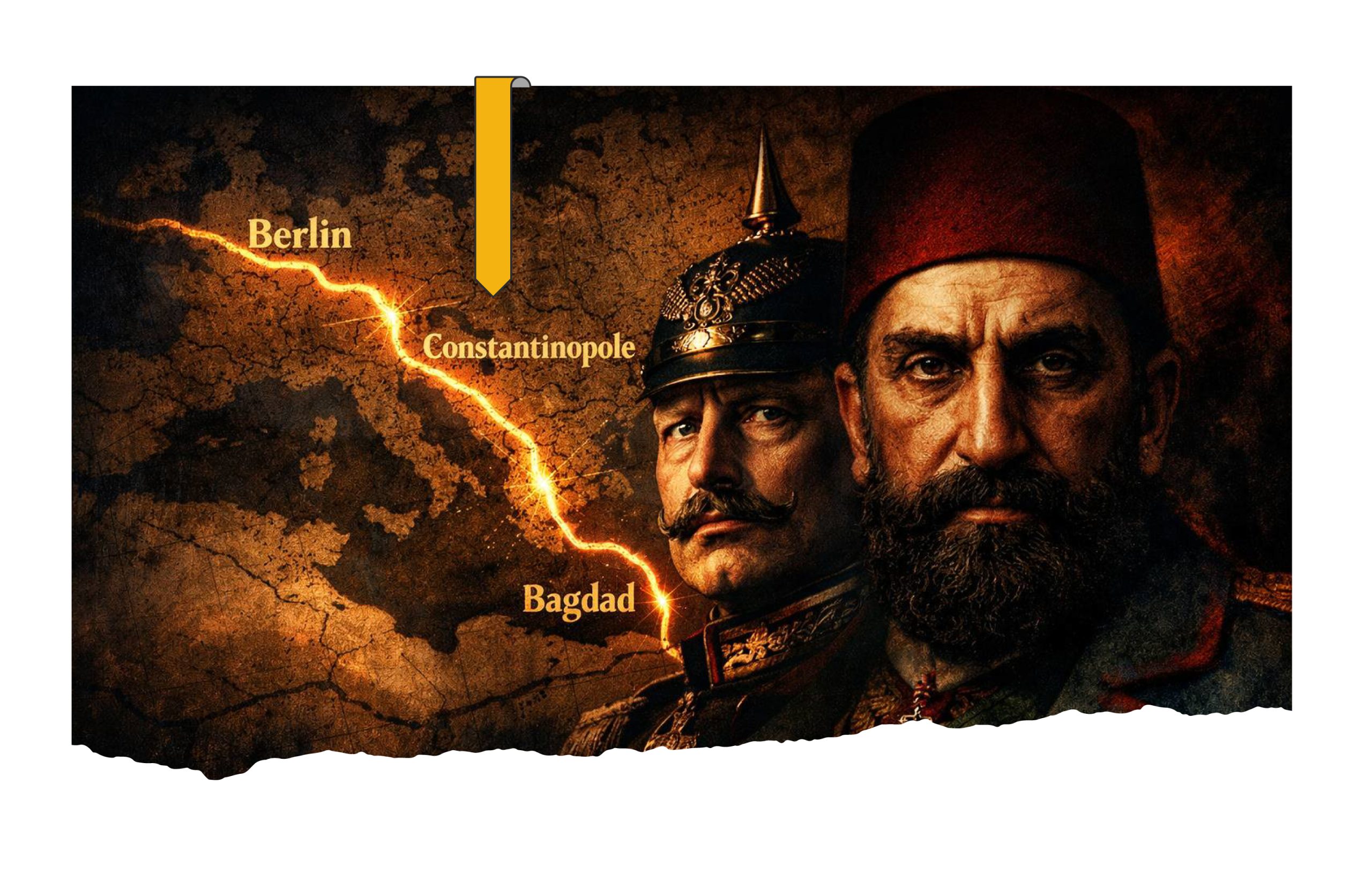 تعززت العلاقات الألمانيةالعثمانية منذ عام (1876) برفع مستوى التمثيل الدبلوماسي إلى سفارة، وبرزت داخل ألمانيا ثلاث رؤى تجاه مصير الدولة العثمانية: إذا تعززت القوة العثمانية، فإنها ستقف في وجه الأطماع الأوروبية، وهو ما يضمن التوسع الاقتصادي الألماني في الأناضول والأقطار العربية، كذلك المصير النهائي للدولة العثمانية هو أن تصبح محمية ألمانية، إضافةً إلى أن إنقاذ ألمانيا لن يتحقق إلا بتحرير البحار من الهيمنة البريطانية، وأن السيطرة على الدولة العثمانية خطوة مرتبطة بهذا الهدف الأكبر.