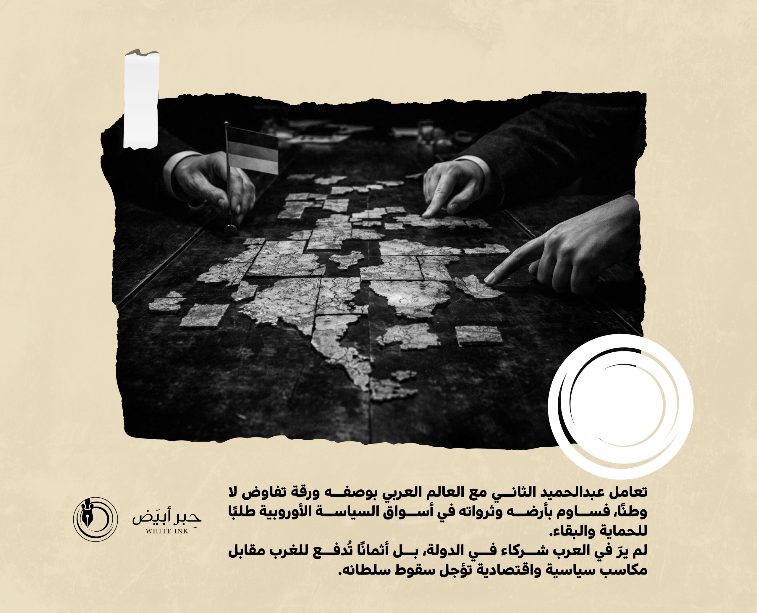 تكشف هذه العبارة بوضوح عن فلسفة الحكم التي آمن بها عبدالحميد حين تولى سلطنة الدولة العثمانية خلال الفترة (1876-1908)، والتي قامت على العنف الصريح، وإنكار أي بُعد أخلاقي أو إنساني في إدارة الدولة. ومن خلال هذه النظرة، لم يكن عبدالحميد حاميًا لثروات العالم العربي، الذي رزح جزء كبير منه تحت السيطرة العثمانية، بقدر ما كان يبحث عن الدولة الحليفة التي يمكن أن يسلّمها تلك الثروات مقابل ضمانات سياسية، حتى وإن كان ذلك على حساب العرب أنفسهم.
